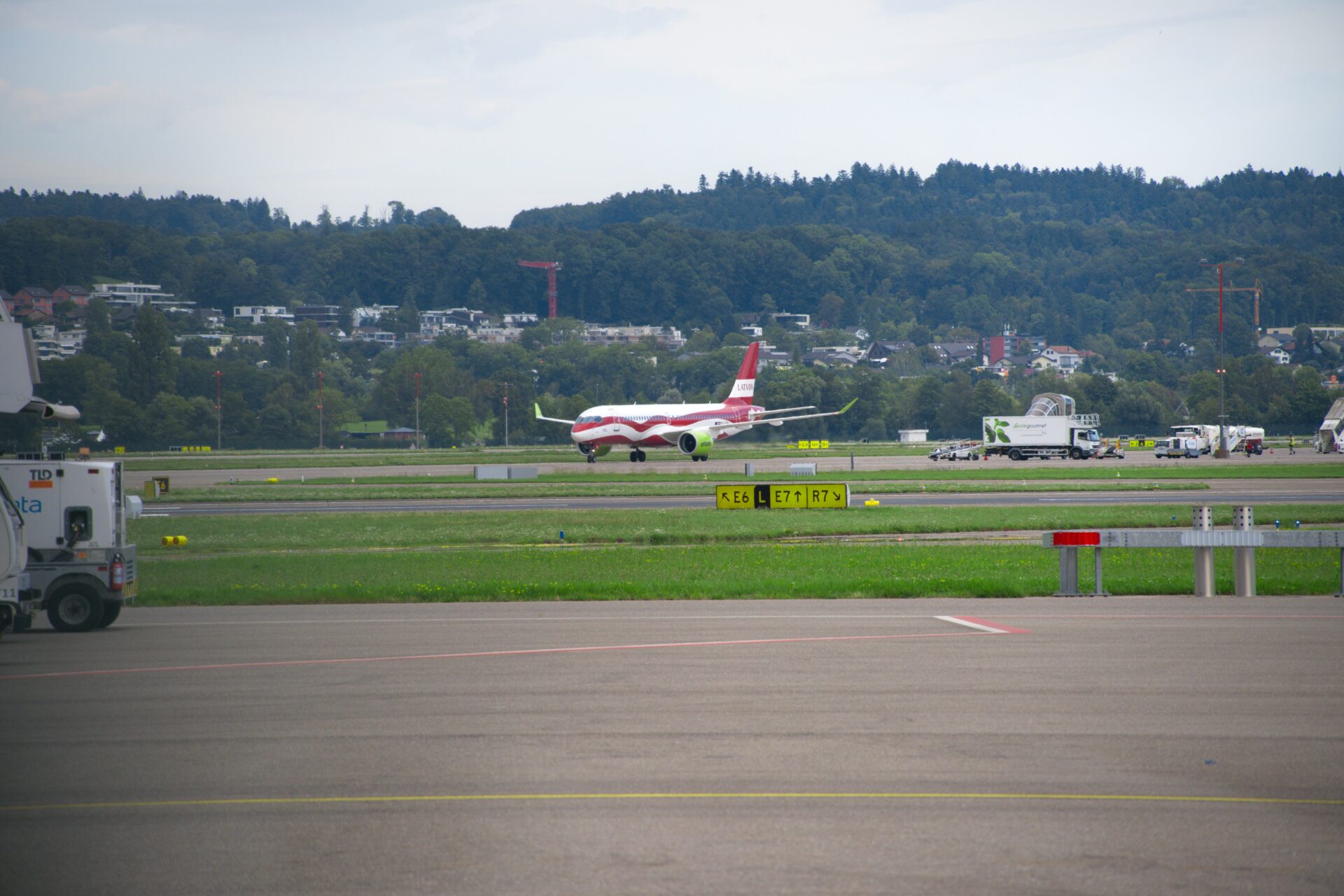 We were finally able to capture this beautiful Air Baltic livery: „Latvian Flag.“ It’s beautiful. And, of course, very eye-catching. Especially for Air Baltic. The airline usually flies with striking green aircraft.