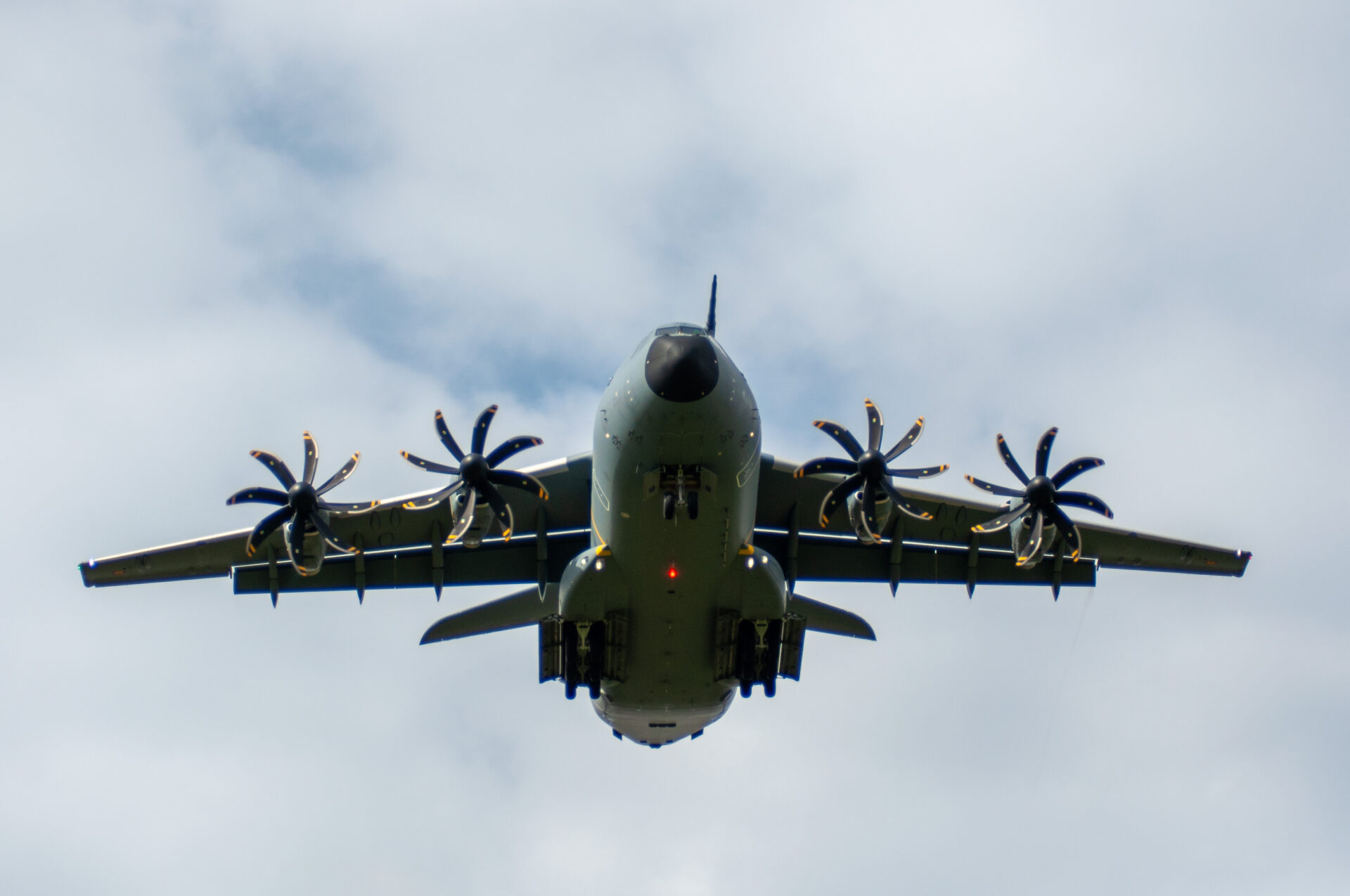 Die Airbus A400M Atlas ist ein moderner, viermotoriger Militärtransporter für strategische und taktische Einsätze. Sie kombiniert große Reichweite mit hoher Nutzlastkapazität, kann auf kurzen oder unbefestigten Pisten landen und unterstützt Truppen- sowie Materialtransporte, Luftbetankung und humanitäre Hilfseinsätze weltweit zuverlässig und flexibel.