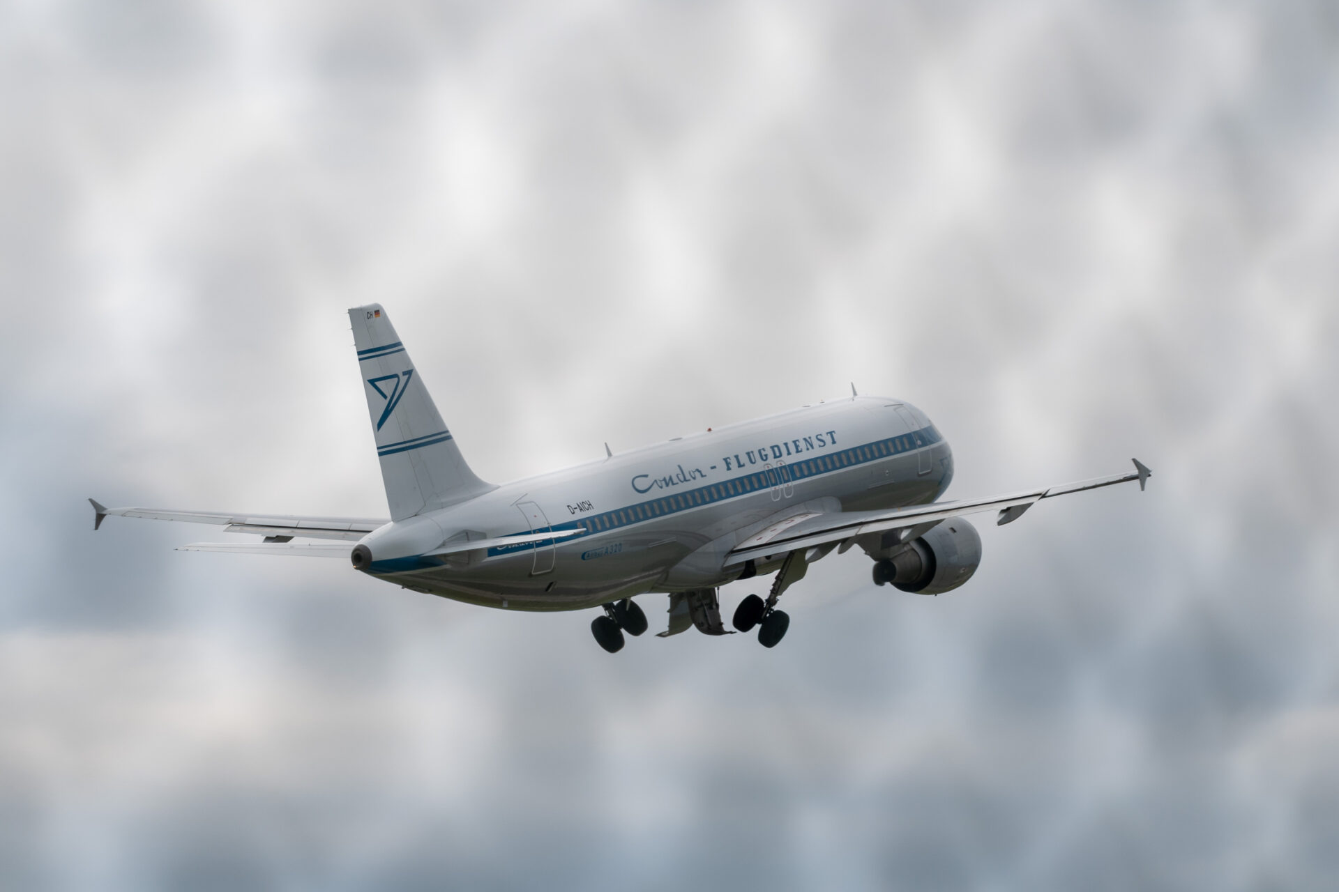 Textauszug condor.com. Endlich ist unser Hans wieder auf Strecke: Bislang trug die A320 mit der Kennung D-AICA die grau-blauen Farben der frühen 60er Jahre, ab jetzt erinnert der Condor-Airbus mit der Kennung D-AICH an die Anfänge des Ferienflugs.